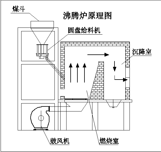 沸騰爐是一種能夠燃燒劣質(zhì)煤的新型爐,從燃燒方式上,它克服了層燃爐和噴燃爐的缺點(diǎn),是一種新型的流化床式燃燒爐;燃料經(jīng)破碎成6mm以下的顆粒,由圓盤給料機(jī)均勻的送入爐膛,可控的高風(fēng)壓通過布風(fēng)板上的風(fēng)帽孔射入爐床,燃料在高風(fēng)壓的作用下呈流態(tài)化沸騰狀燃燒,相互摩擦、碰撞及裂解,由小及大直至燃盡為止。由于煤粒能與空氣充分混合并進(jìn)行充分的熱交換,因此新加入的煤粒能充分的被熱煙氣包圍,因而被迅速強(qiáng)化燃燒,此種意義上它是一種強(qiáng)化燃燒設(shè)備。