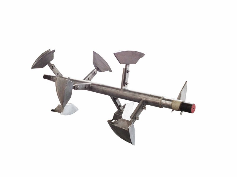 該混合機工作時,主軸以適當?shù)霓D(zhuǎn)速帶動犁刀旋轉(zhuǎn),飛刀由電機直接驅(qū)動作高速運動。筒內(nèi)物料受犁刀作用而拋起,一部分沿筒壁作圓周運動,另一部分被拋向筒體中心或沿犁壁法線方向向筒體兩端飛散,進行浮游式擴散混合。物料流經(jīng)高速旋轉(zhuǎn)的飛刀時,被高速剪碎和強烈擴散,進行剪斷擴散混合。粉粒體在機內(nèi)的運動軌跡縱橫交錯,互相撞擊,產(chǎn)生洶涌的渦流,在極短的時間內(nèi)達到均勻的混合。